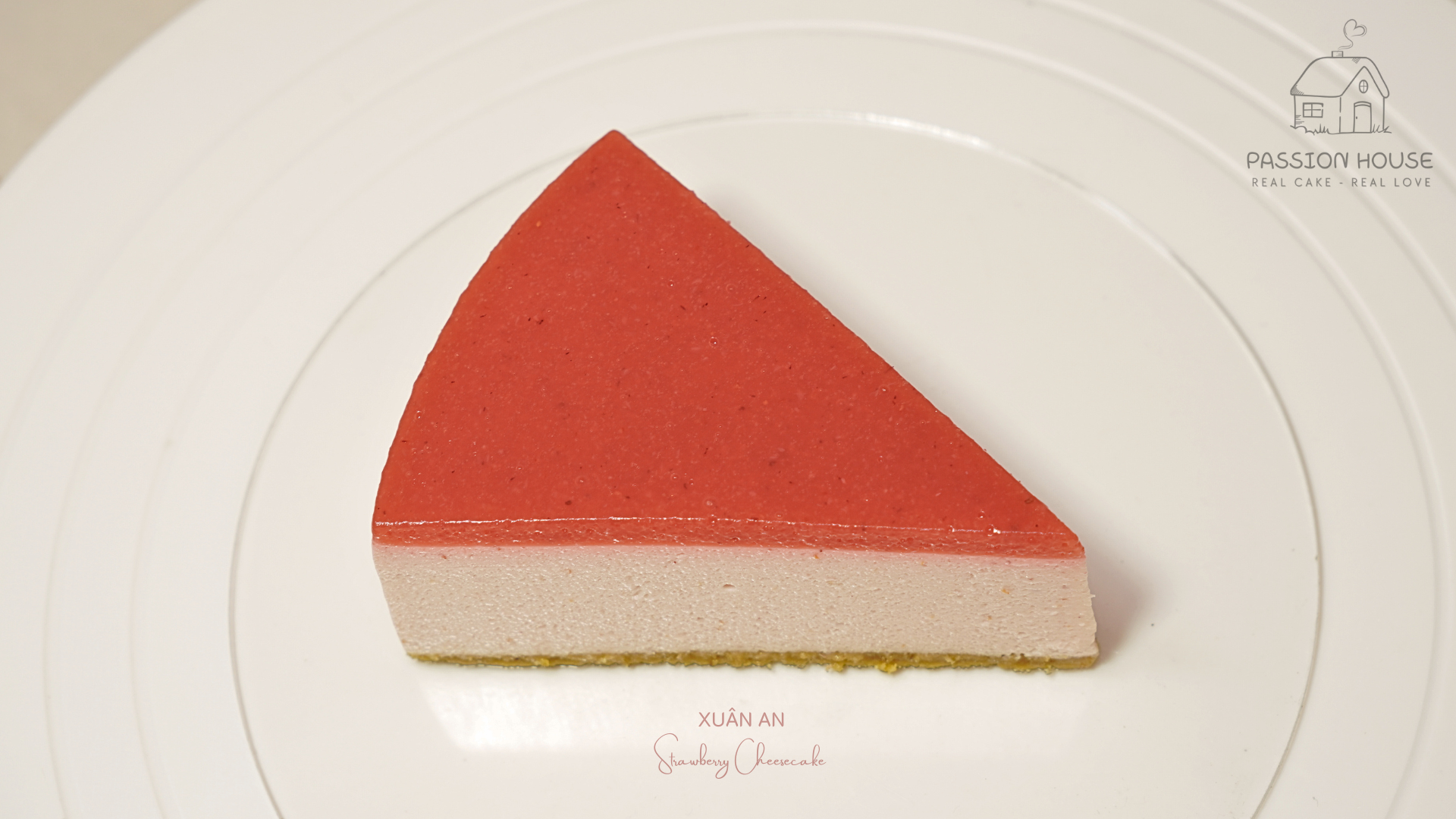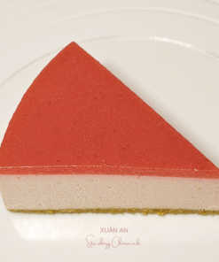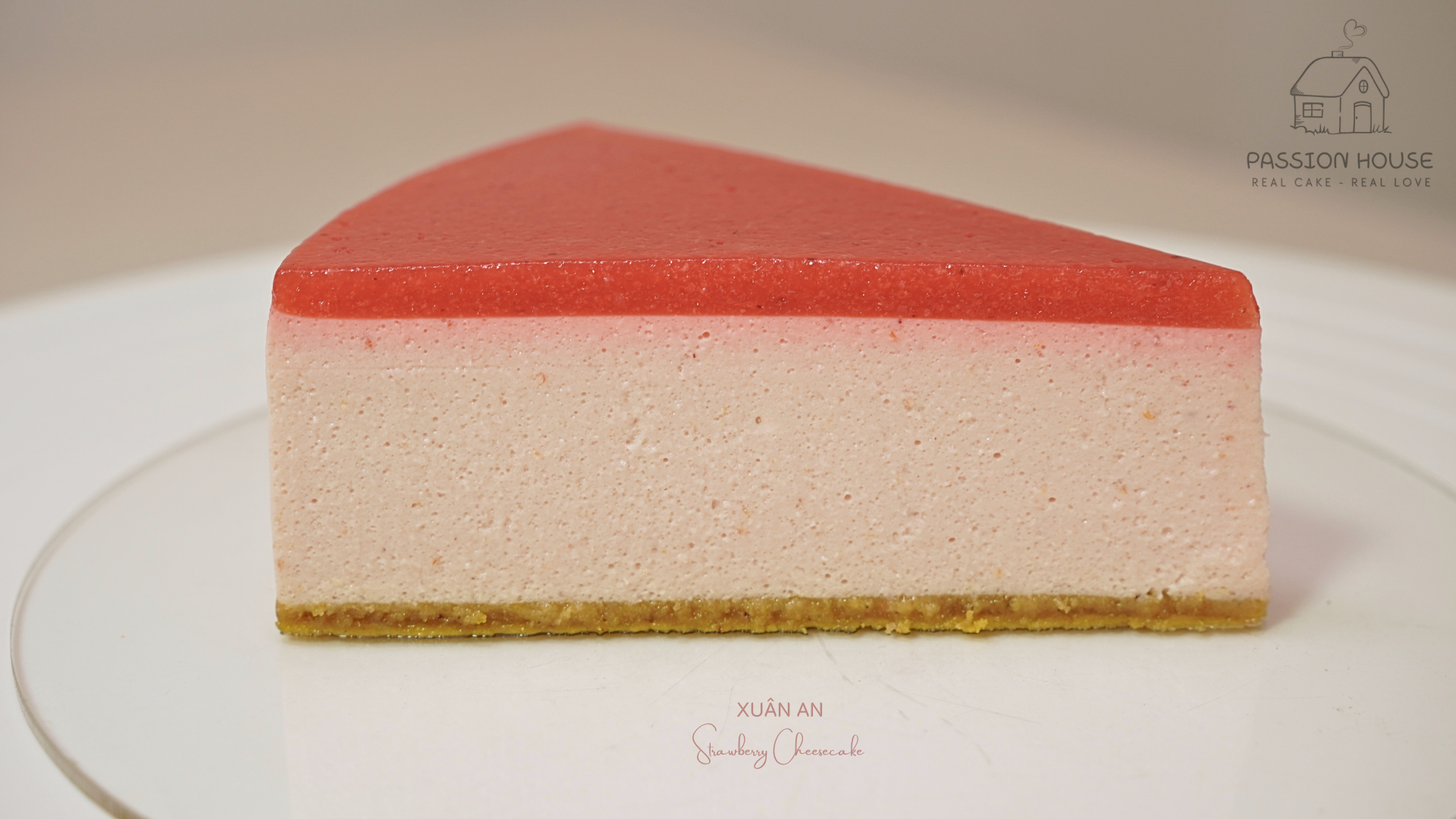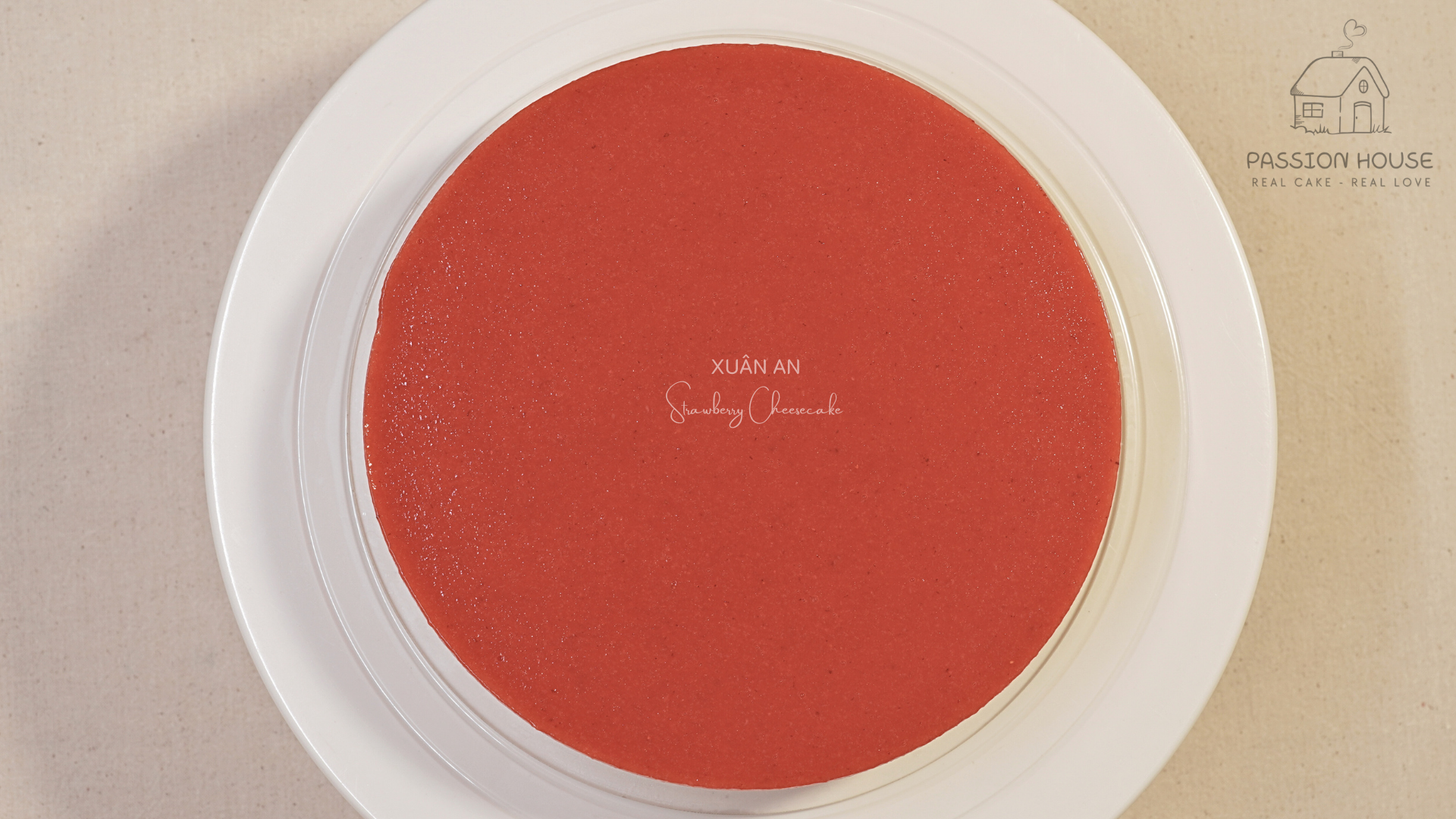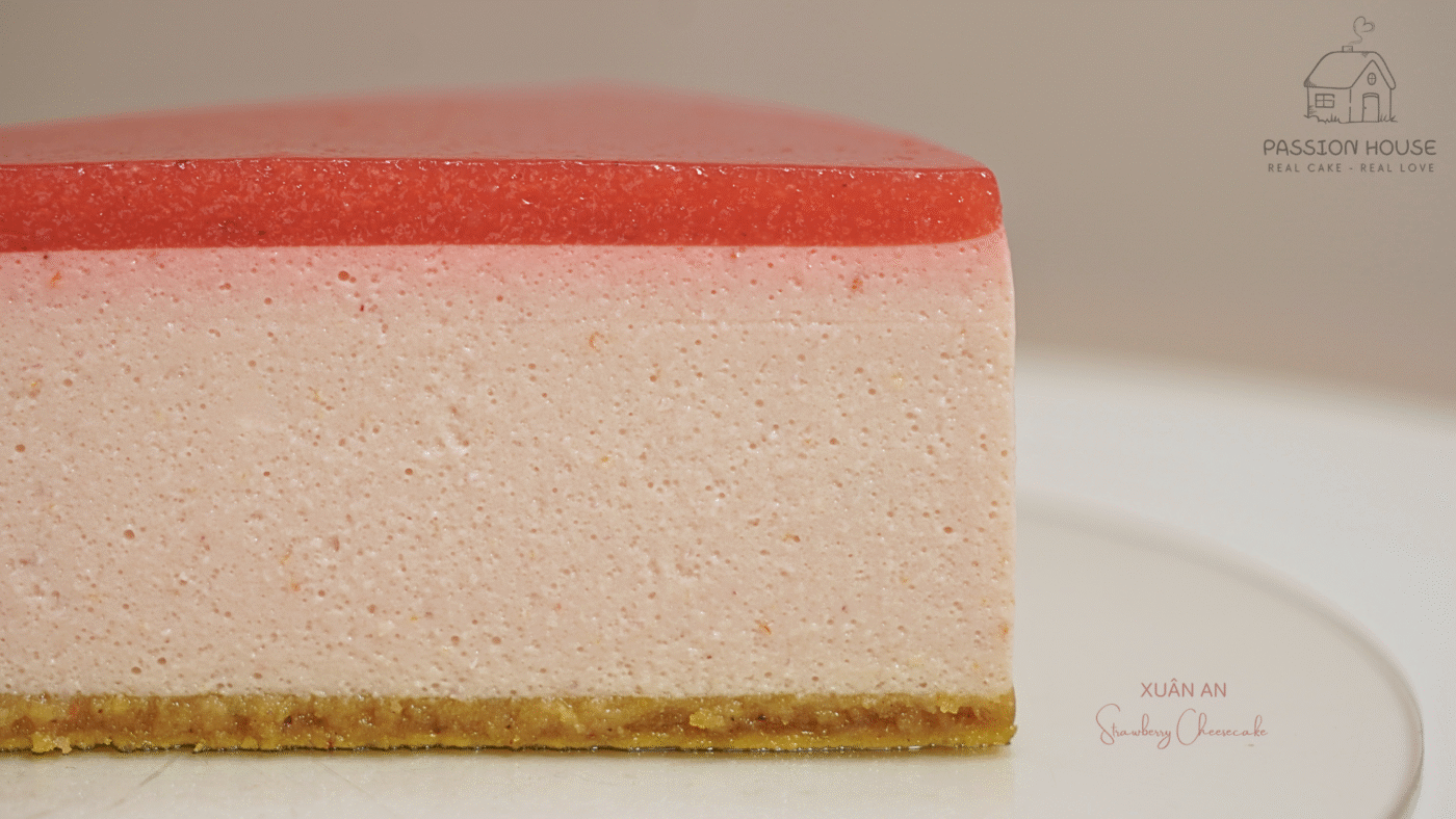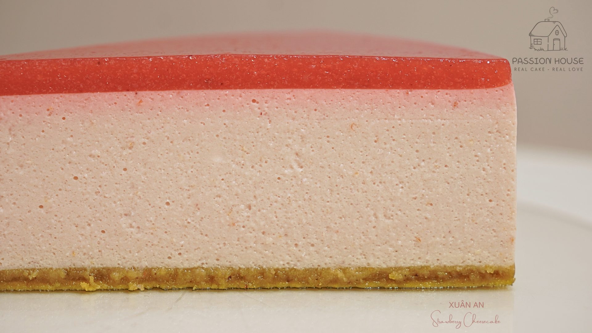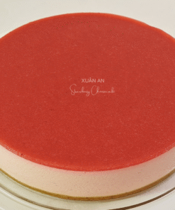Phía trên cùng là lớp mặt từ cốt dâu tươi trong trẻo, giữ trọn sắc đỏ hồng tự nhiên và hương vị thiên nhiên tươi mát.