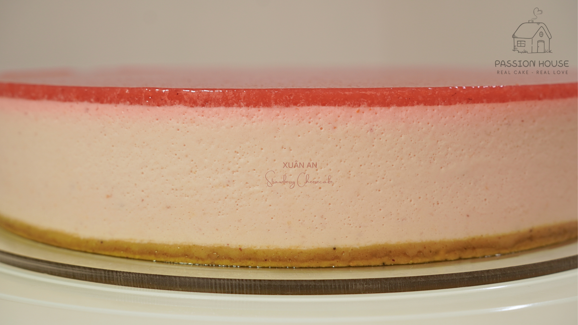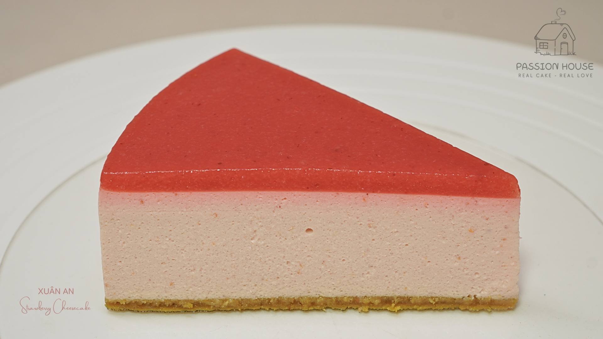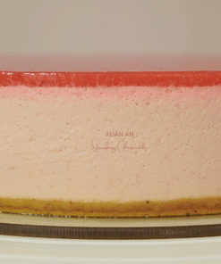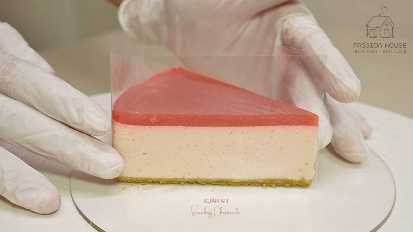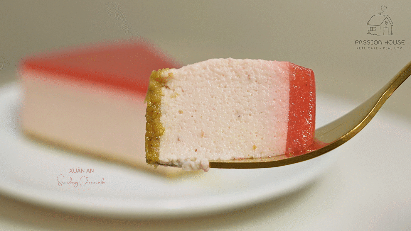 Phía trên cùng là lớp mặt từ cốt dâu tươi trong trẻo, giữ trọn sắc đỏ hồng tự nhiên và hương vị thiên nhiên tươi mát.