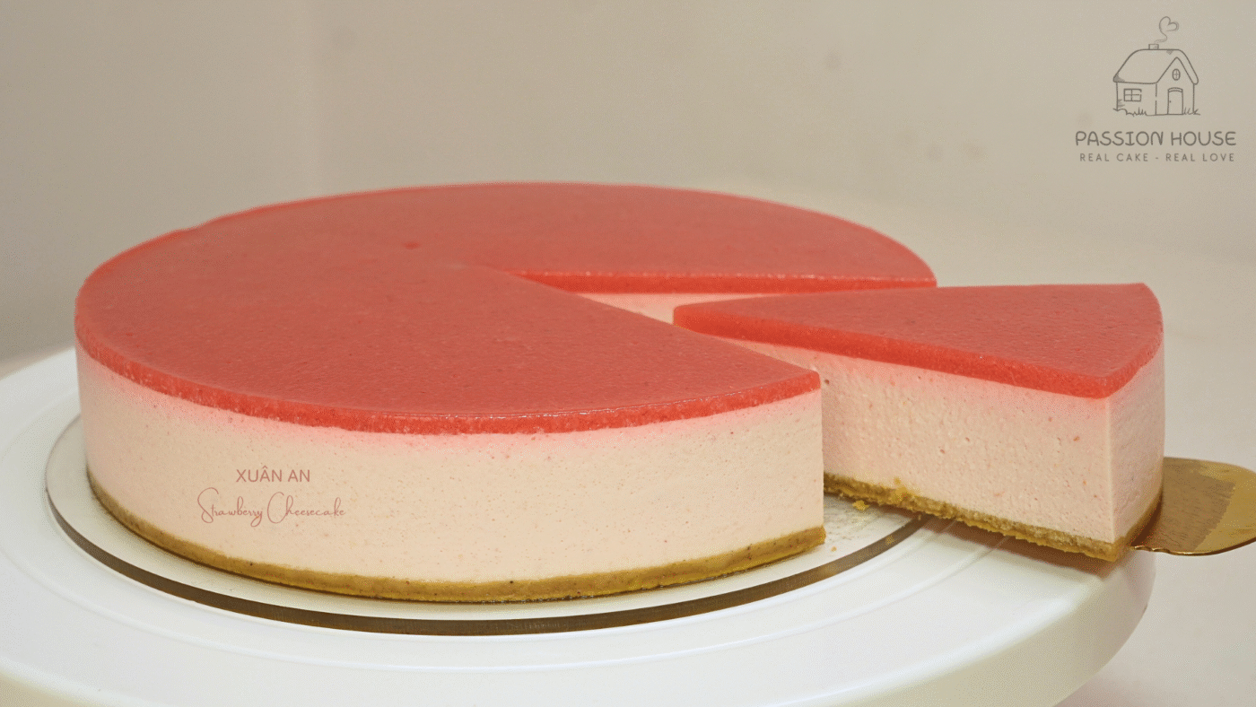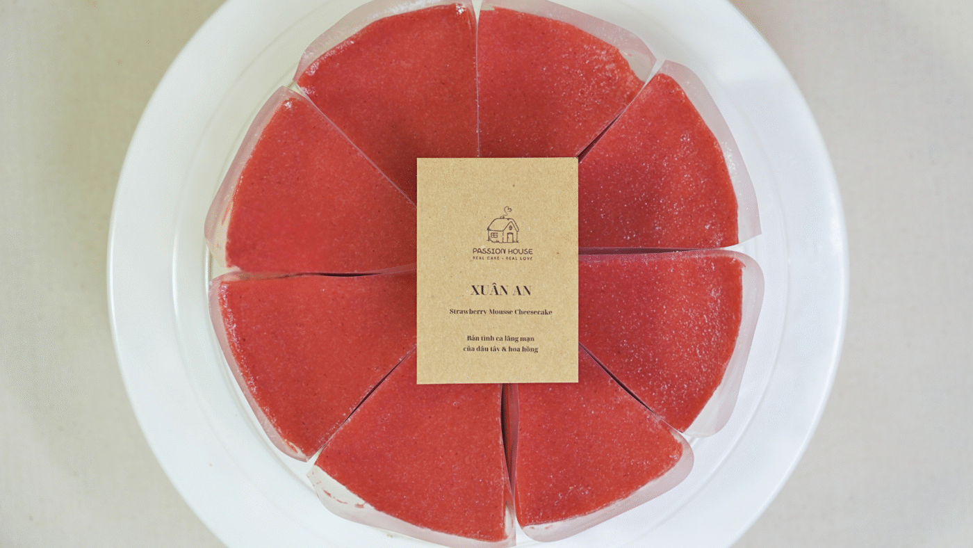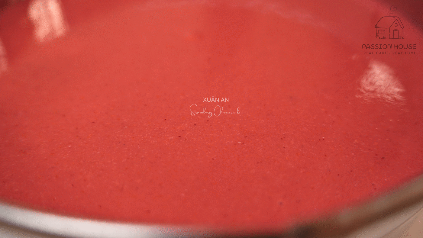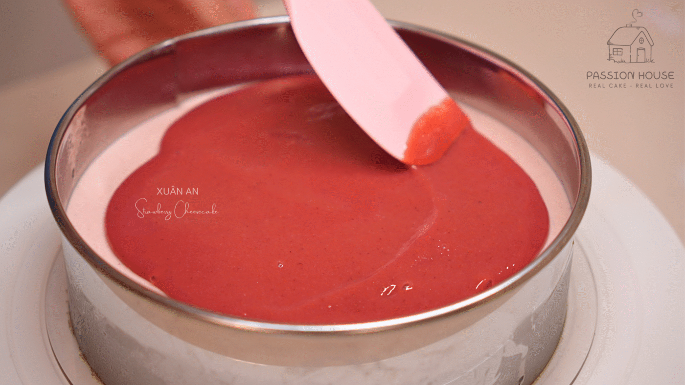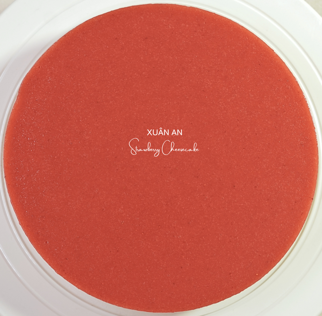 Phía trên cùng là lớp mặt từ cốt dâu tươi trong trẻo, giữ trọn sắc đỏ hồng tự nhiên và hương vị thiên nhiên tươi mát.