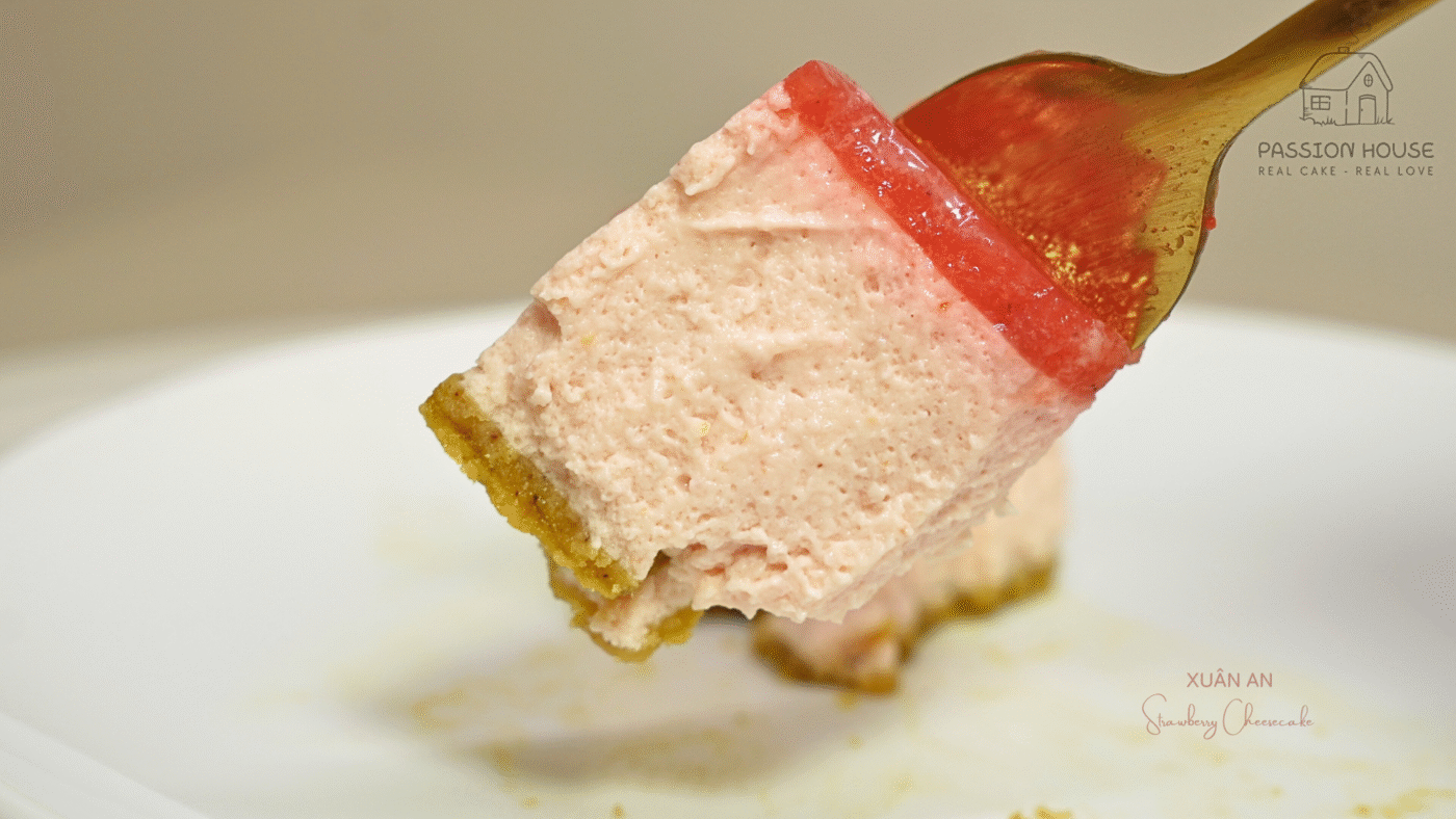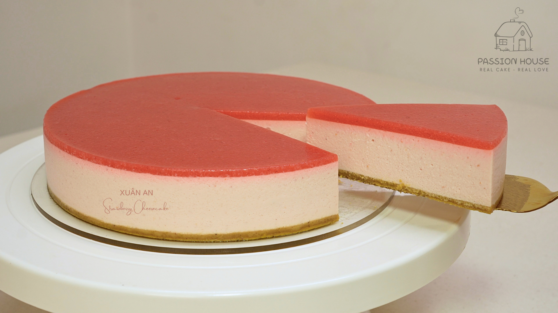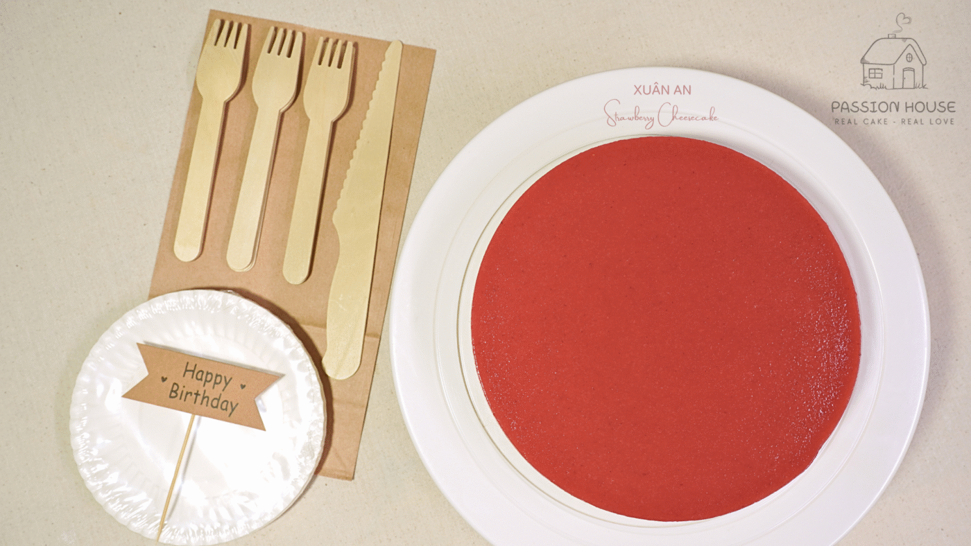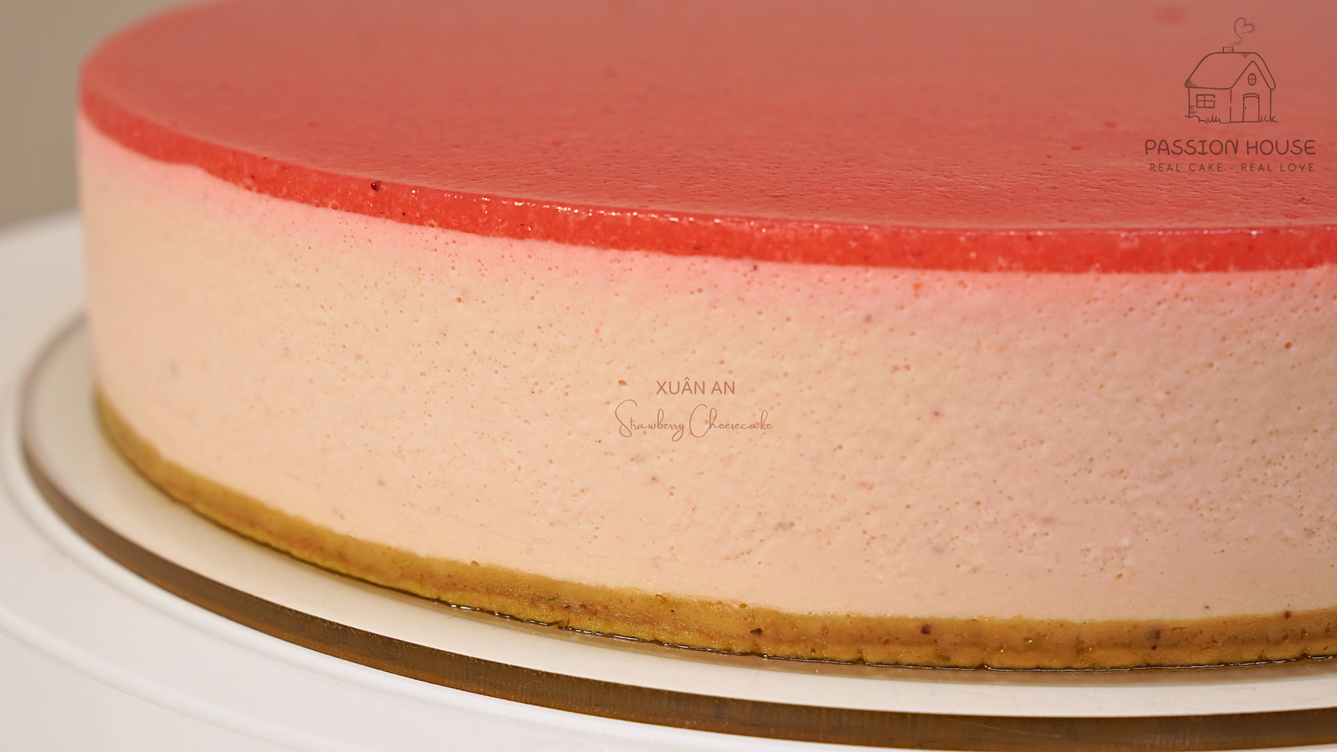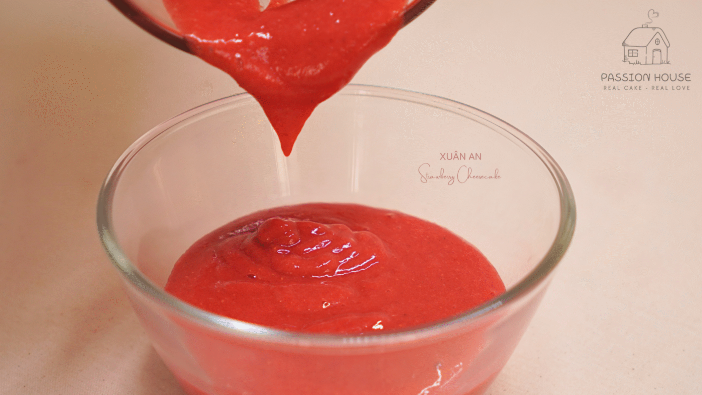 Phía trên cùng là lớp mặt từ cốt dâu tươi trong trẻo, giữ trọn sắc đỏ hồng tự nhiên và hương vị thiên nhiên tươi mát.