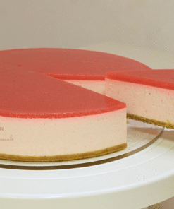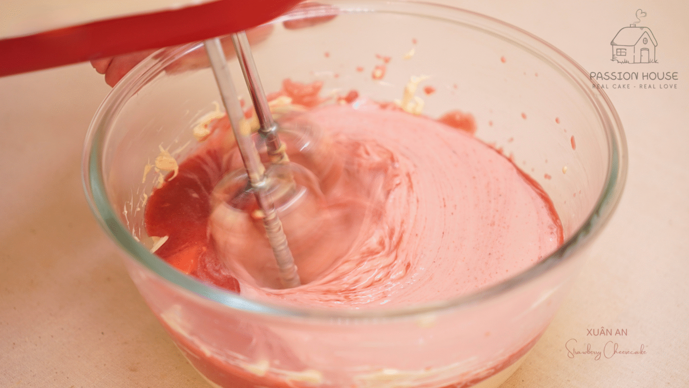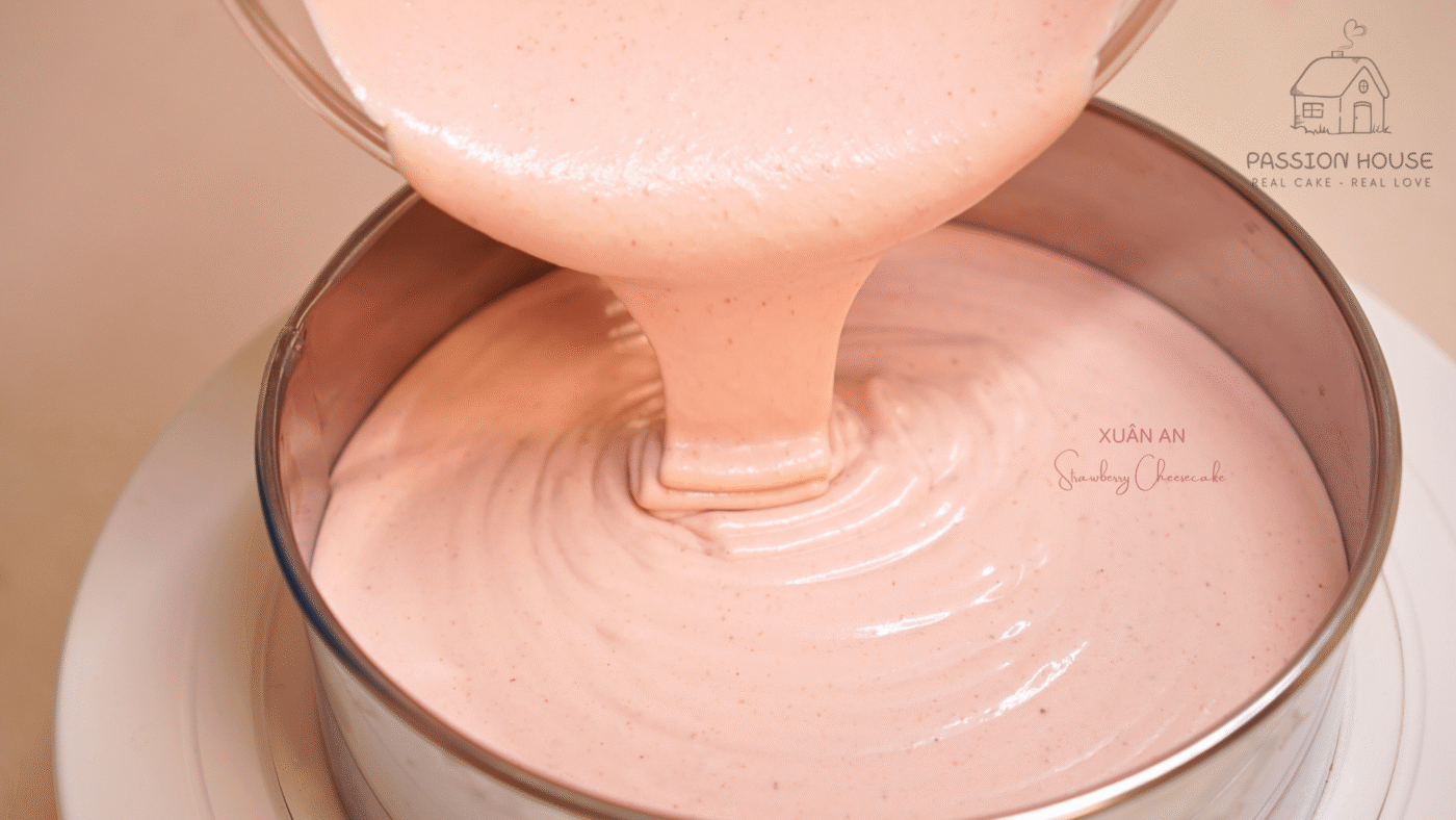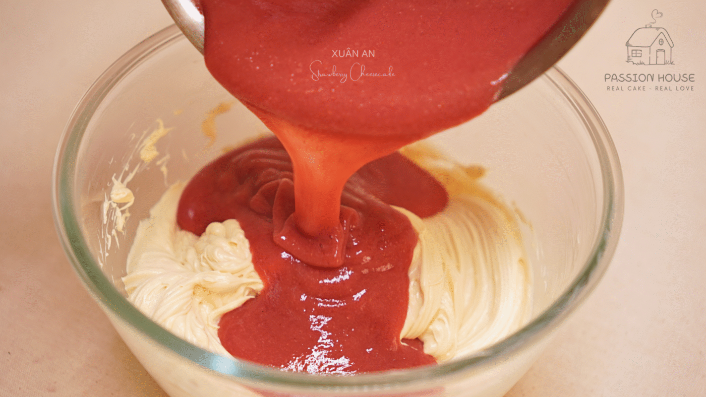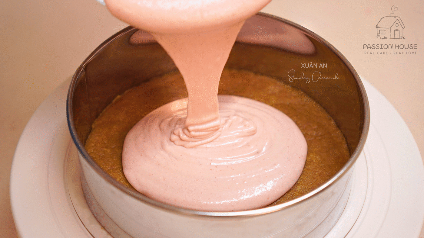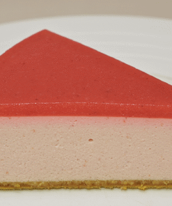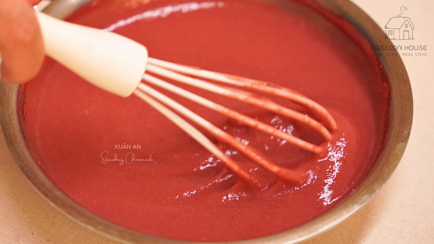 Phía trên cùng là lớp mặt từ cốt dâu tươi trong trẻo, giữ trọn sắc đỏ hồng tự nhiên và hương vị thiên nhiên tươi mát.