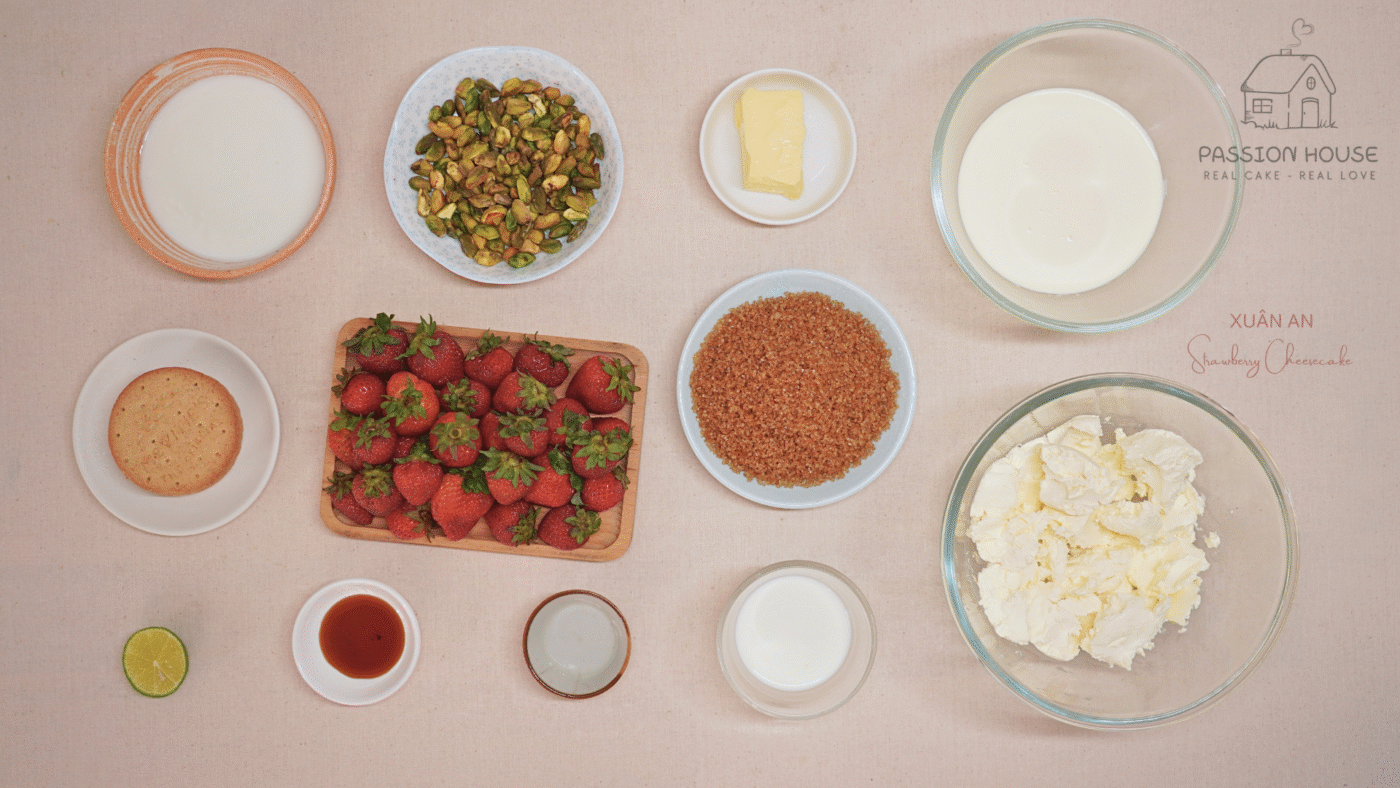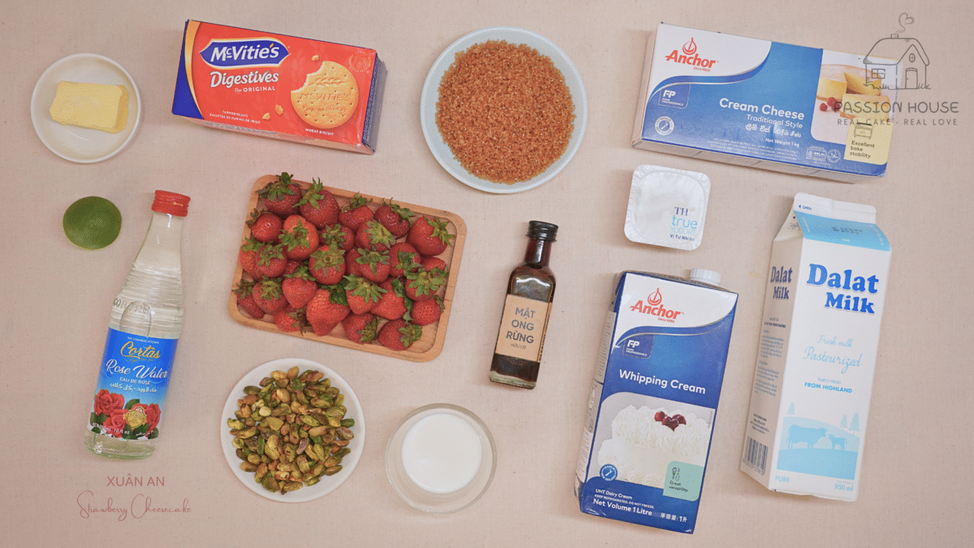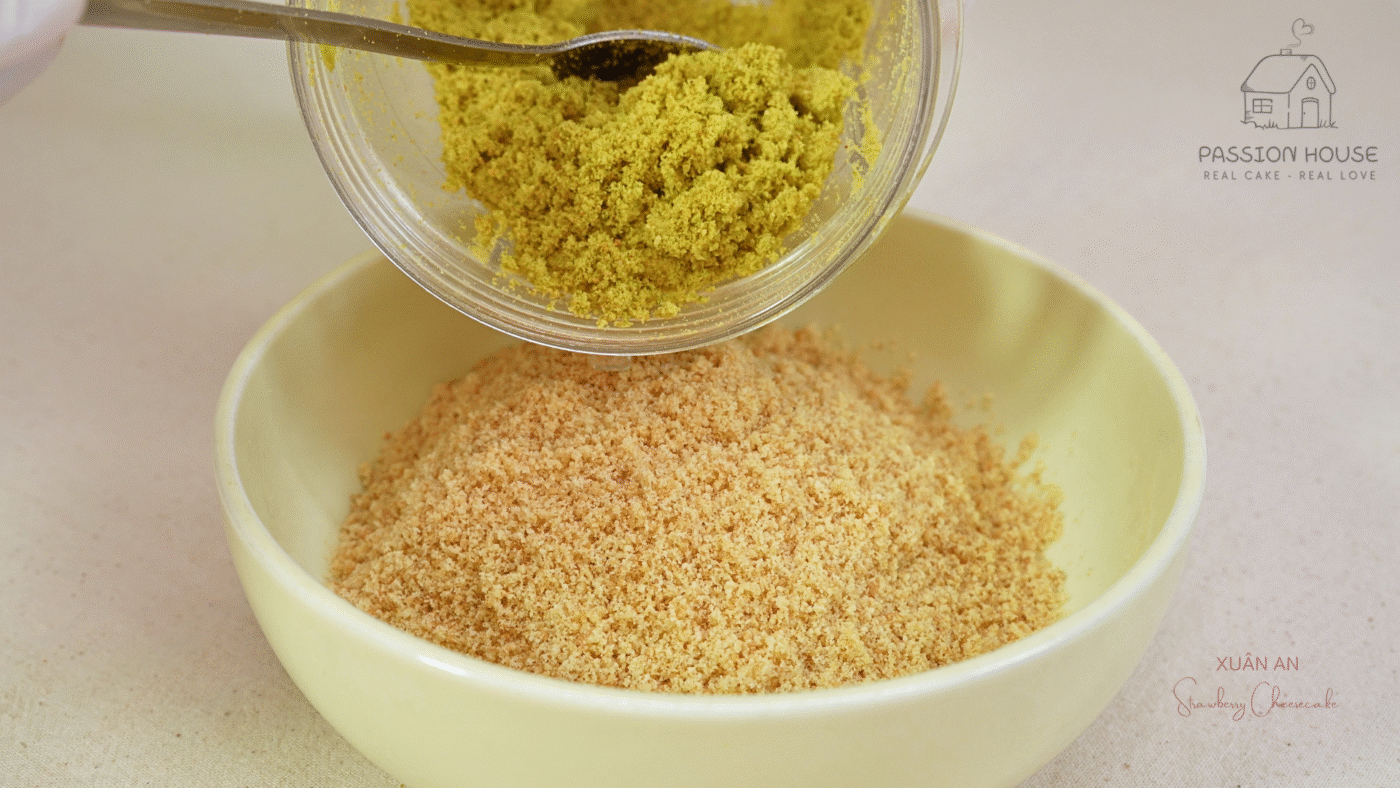 Phía dưới là lớp đế bánh quy hảo hạng thơm mùi bơ sữa, cùng với hạt dẻ cười và chút mật ong dịu ngọt – như nền đất vững chắc nâng đỡ sắc xuân vừa chớm nở.